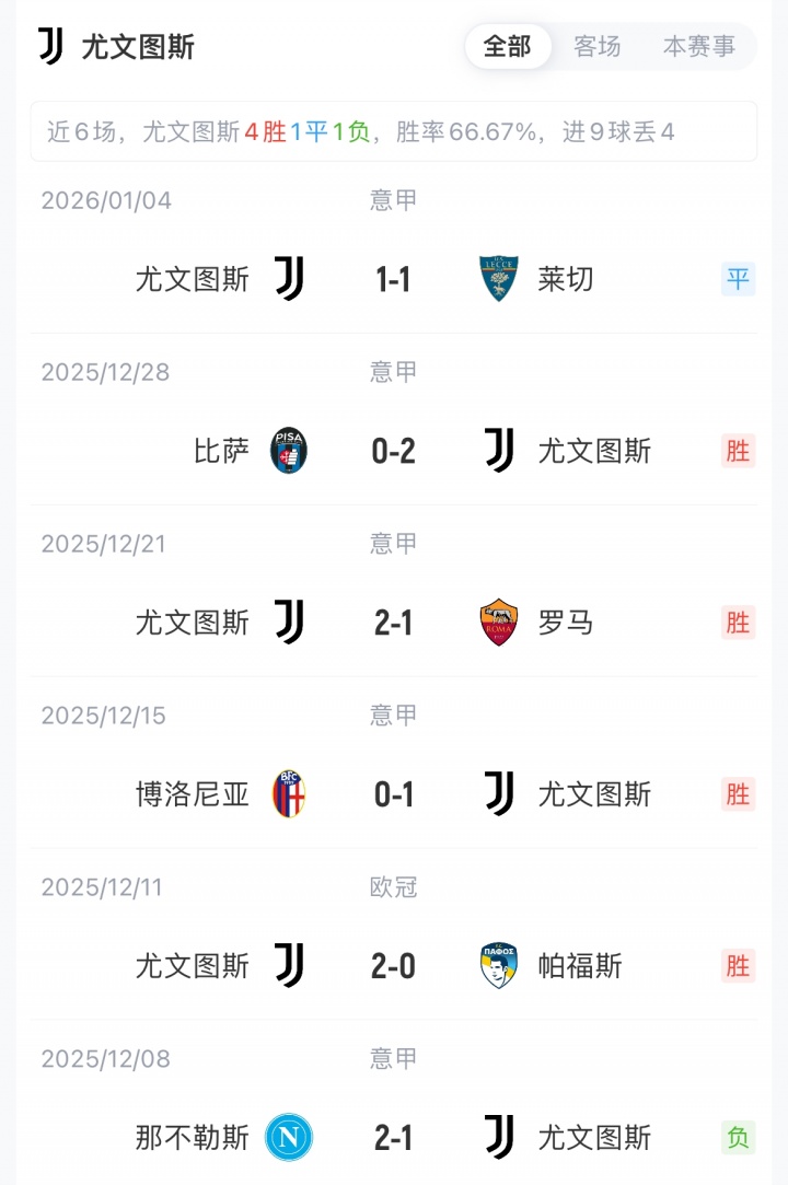 - 2026年01月07日 意甲-尤文3-0客胜萨索洛暂升第4 戴维传射米雷蒂破门卡卢卢造乌龙