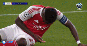 11月27日讯 阿森纳vs拜仁第16分钟,诺伊尔出击解围,萨卡鼻子被撞出血,队医进场处理!