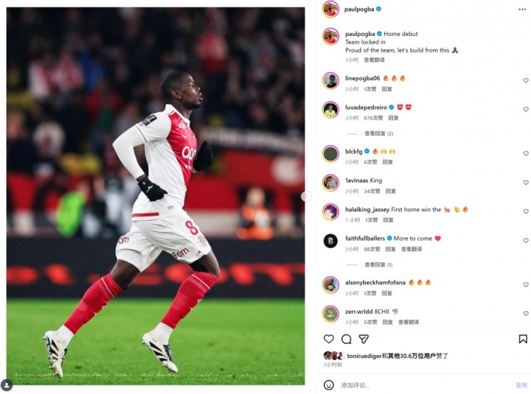 - 替补登场,博格巴社媒晒照:迎来主场首秀,为这支团队感到骄傲!