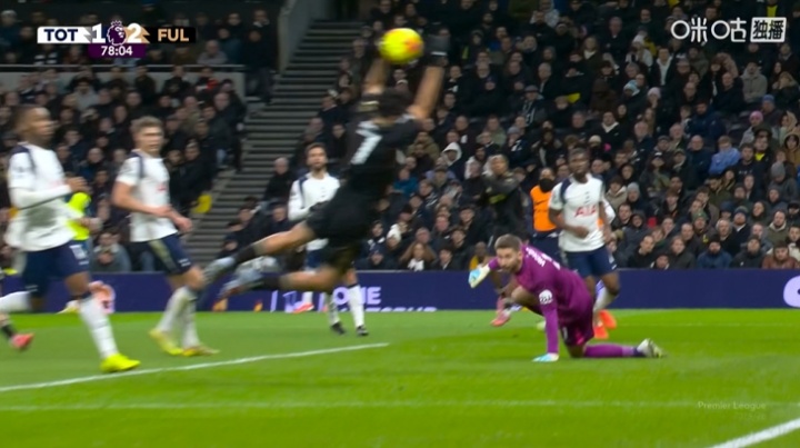 11月30日讯 英超第13轮,热刺对阵富勒姆。78分钟,丘库埃泽传中,希门尼斯跟上直接一个扣篮动作,被出示黄牌。