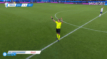12月20日讯 意大利超级杯半决赛,博洛尼亚对阵国米。56分钟,博尼禁区内倒地,裁判判罚点球。VAR介入,主裁观看回放后认为没有犯规,取消点球。